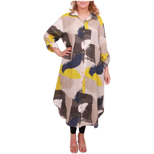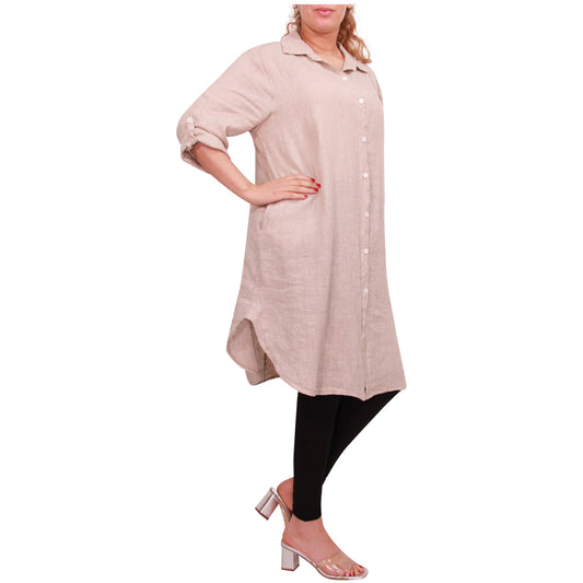 Dames linnen overhemd lange lengte voor knop opening tuniek top